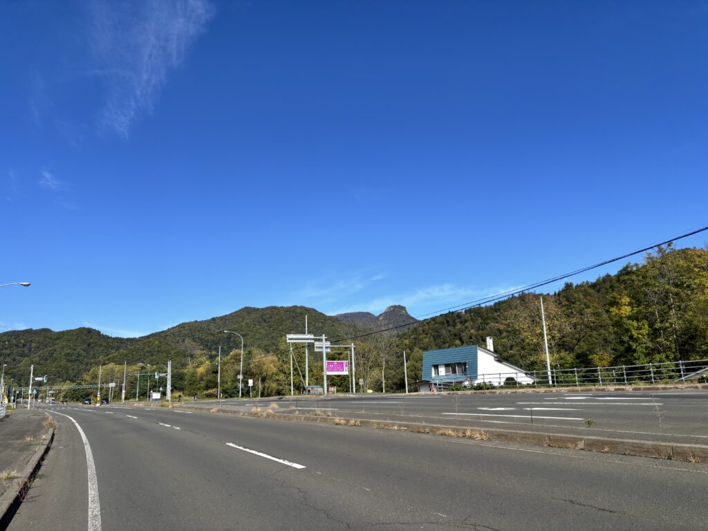 天気がいいし北海道特有の道路なので、ただの道路でも絵になる。