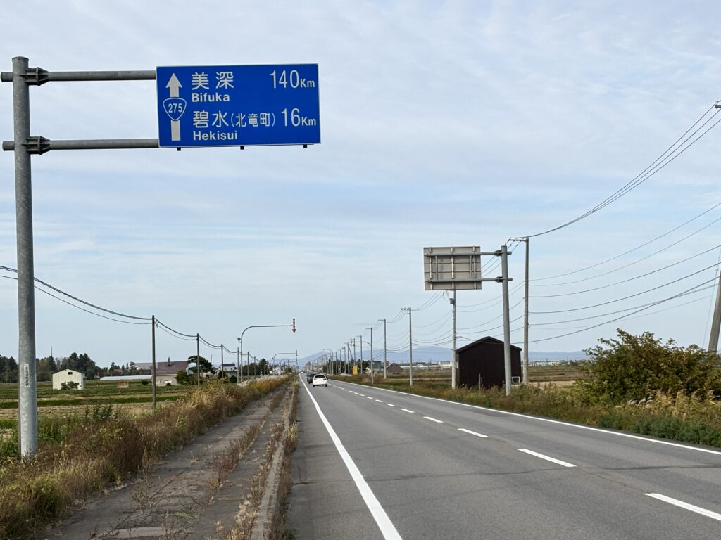 美深まで140km。北海道スケールの標識やな。県跨がないんやぞ。