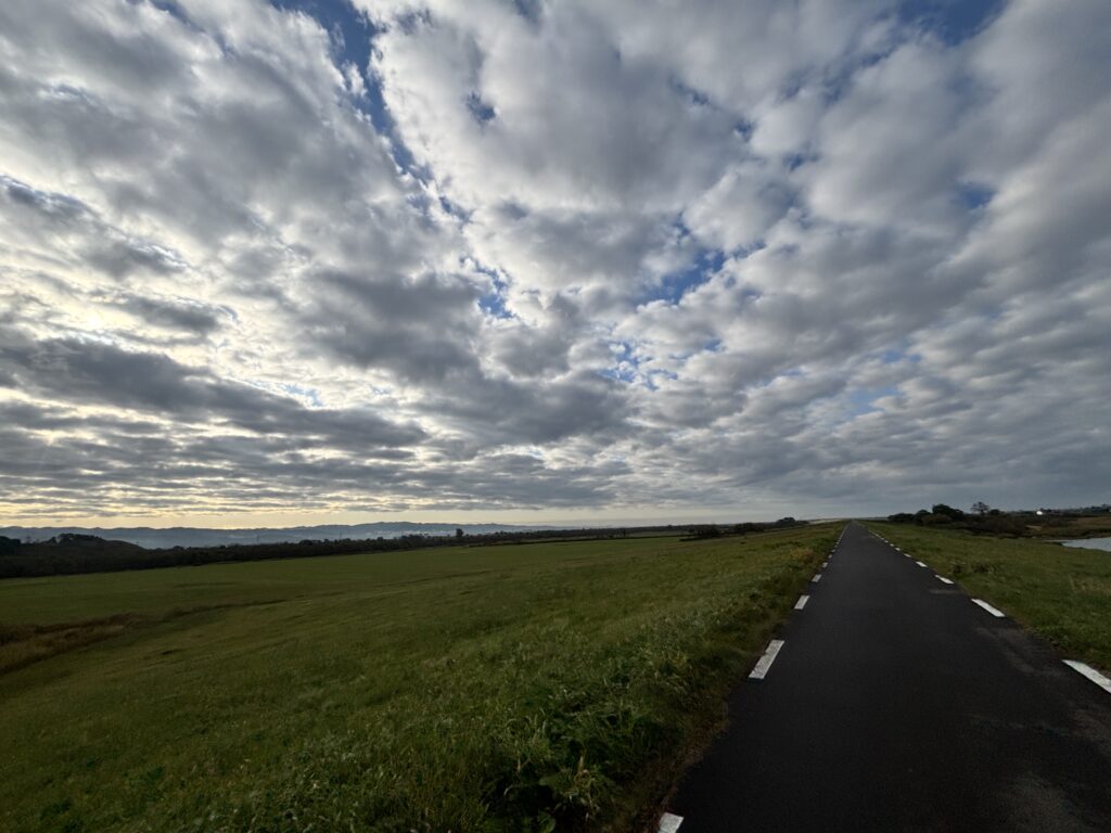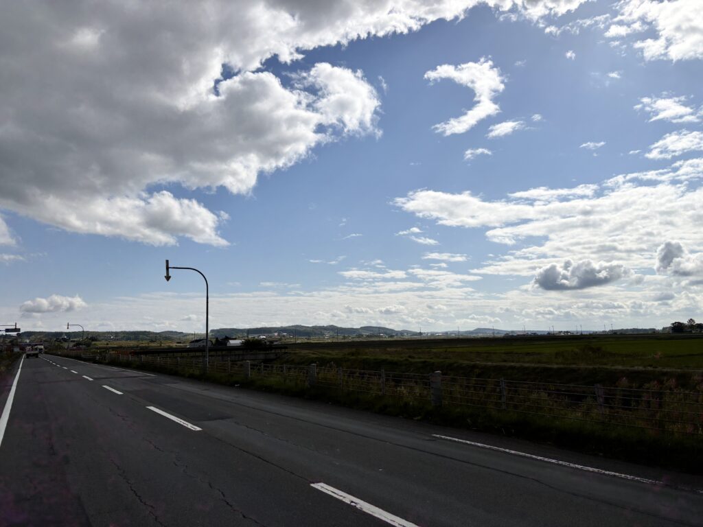 道中の風景がいいね!日が差すので雲の陰影がいい感じ。