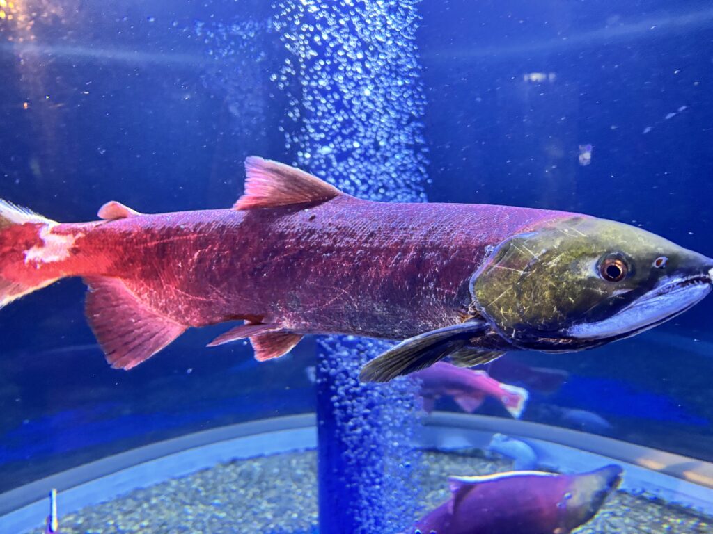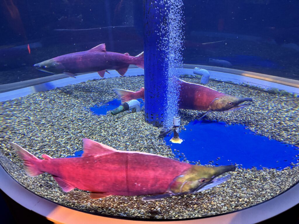 赤鮭は漁獲量が決まっていて、期間限定の生きているうちの展示だそうです。ラッキーでしたね。