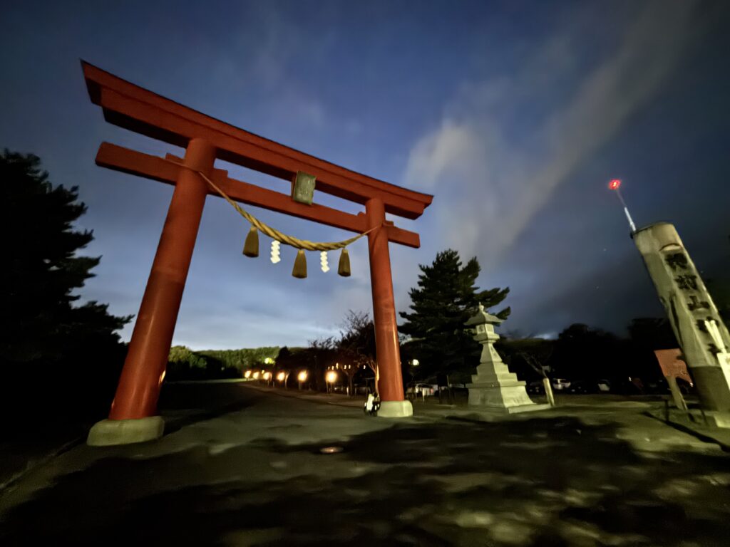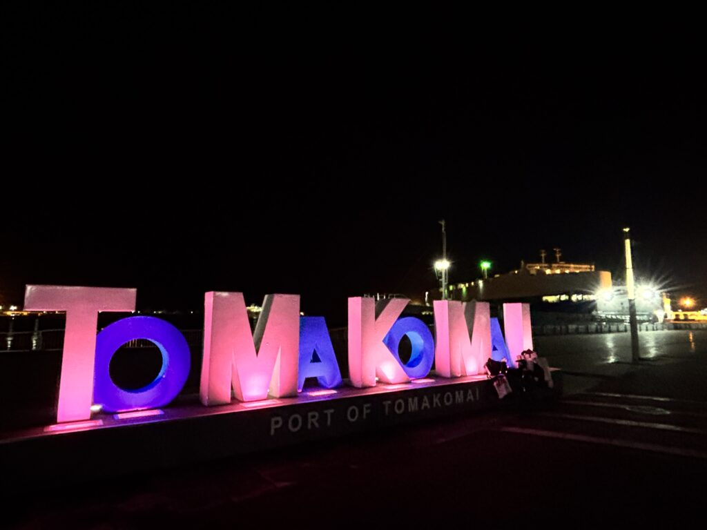 道中何事もなく苫小牧に到着。フェリーの時間まで大分あるので、暗いですが少し観光を。