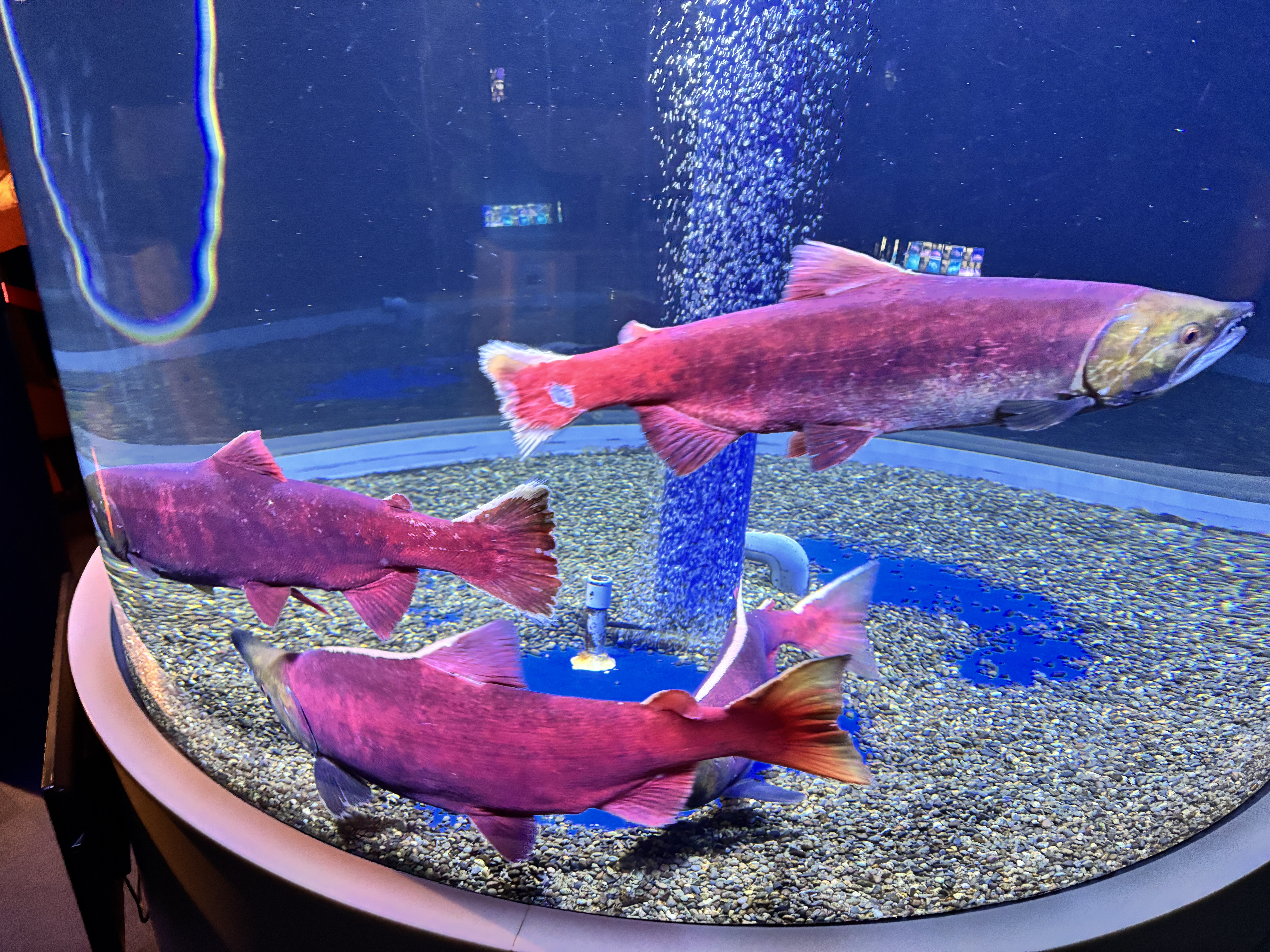 赤鮭は漁獲量が決まっていて、期間限定の生きているうちの展示だそうです。ラッキーでしたね。