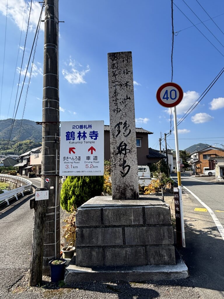要所要所に20番 鶴林寺までの距離が記載されている。