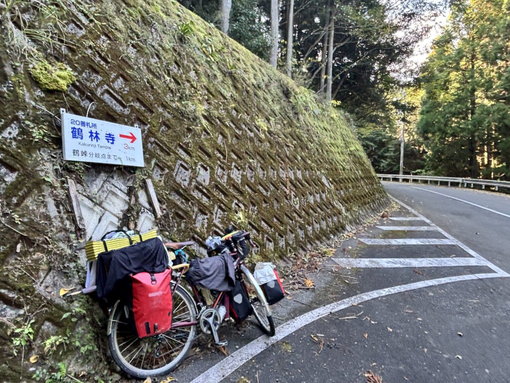 鶴峠という、鶴林寺まで2km地点までは割と漕げる箇所もあったのですが、最後2km地点からはほぼ自転車押し歩き状態でした。