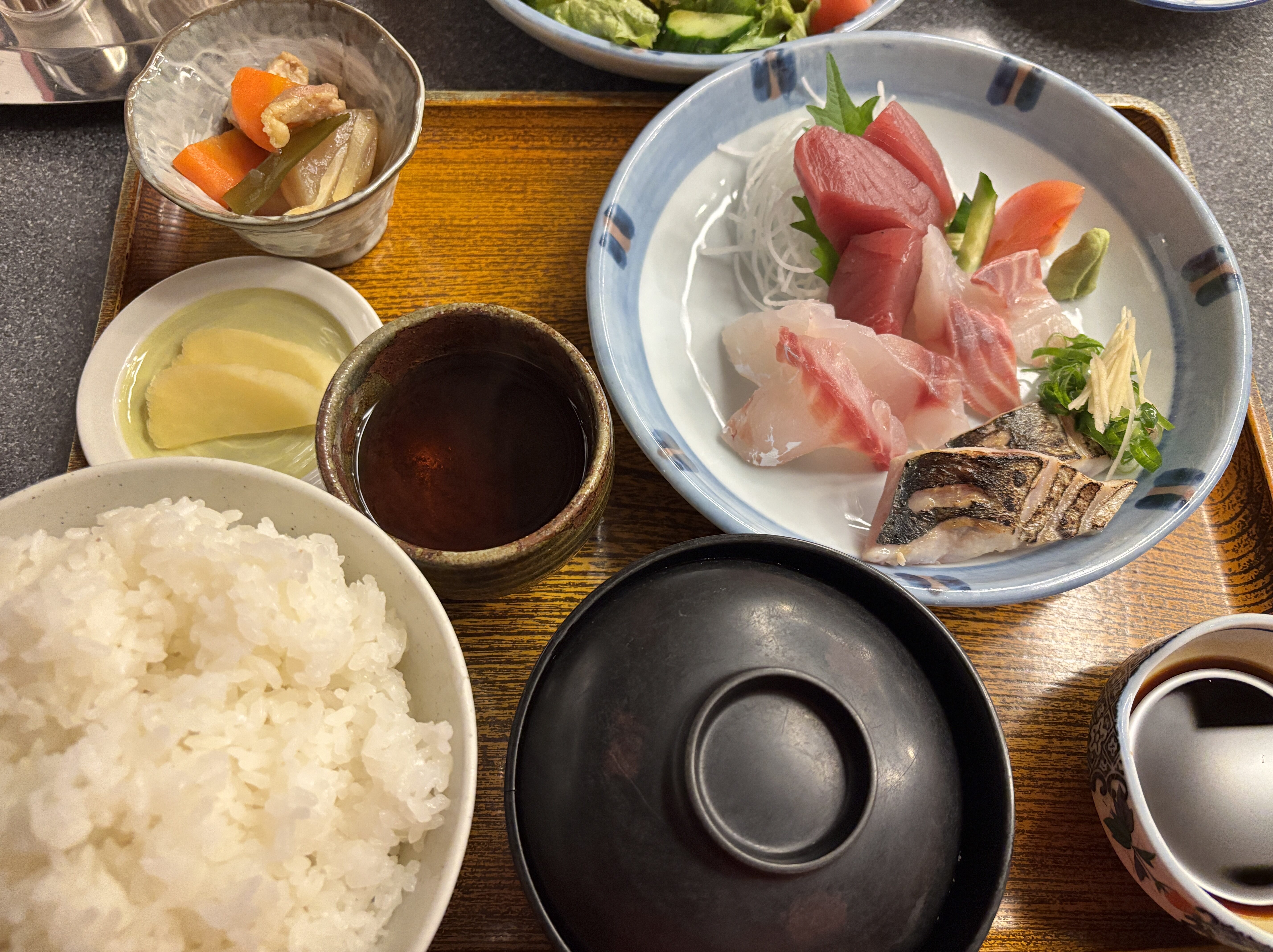 刺身定食 1680円と大盛り150円 若鶏のたたき1000円(四万十鶏)