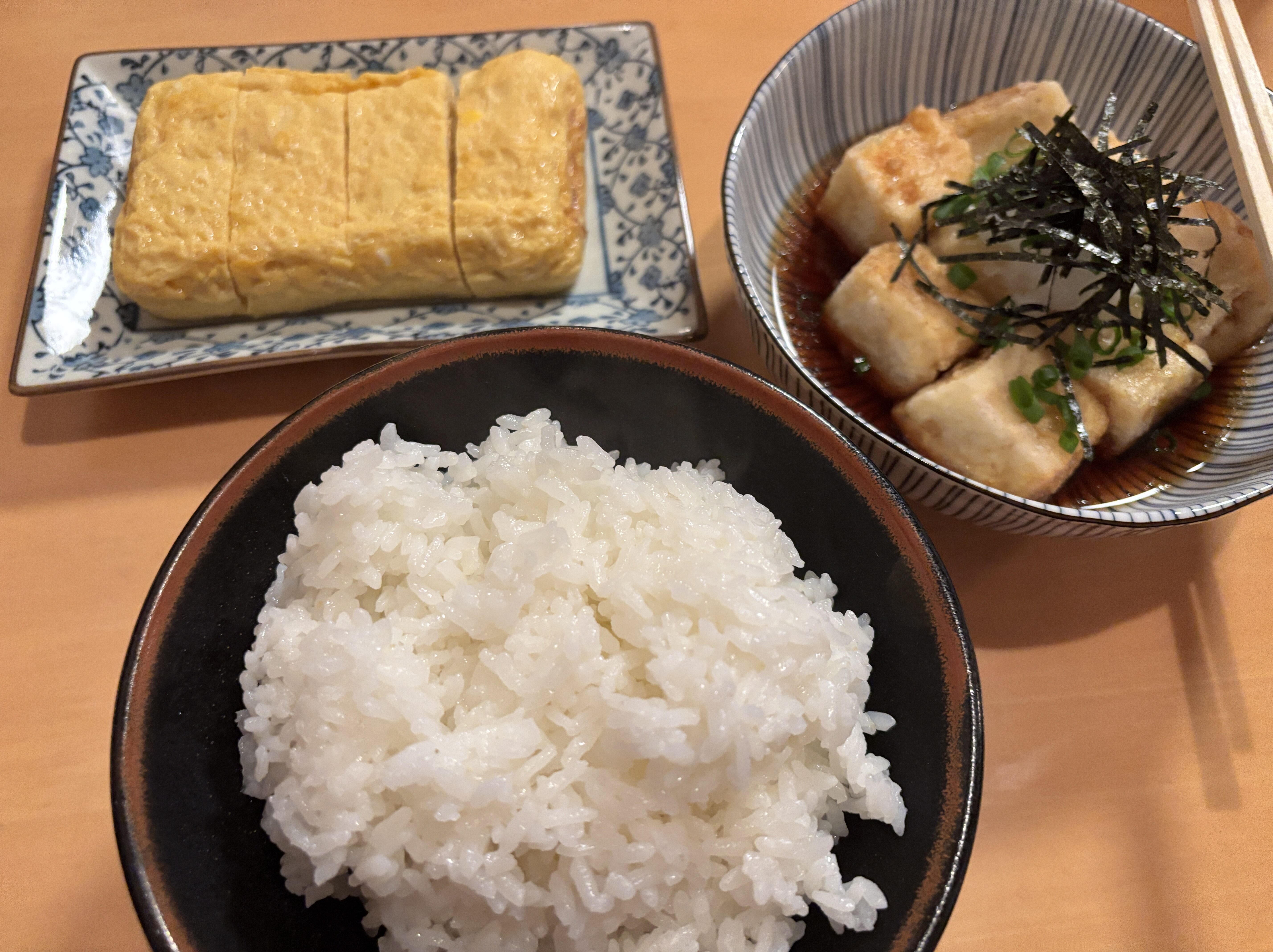 だし巻き、揚げ出し豆腐、唐揚げ、鮎の塩焼き、ご飯2杯 計3000円