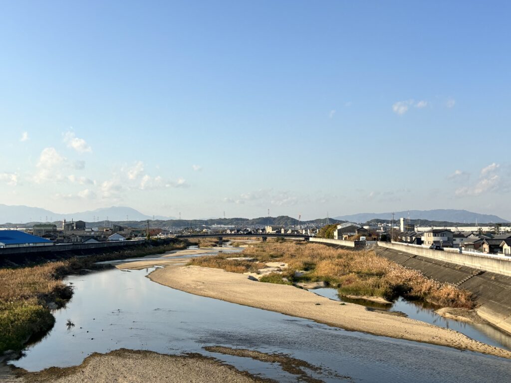 あんまり景色はよろしくないです。川と反対側の田畑は綺麗なところもあるけど。