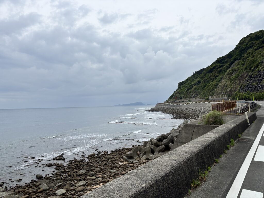 日南海岸。晴れていれば綺麗だったろうに・・・